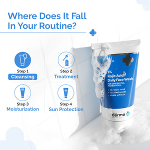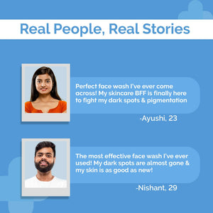 It's a dermatologist-formulated face wash that targets pigmentation & dark spots with a blend of Kojic Acid (anti-pigmentation) fighter, Alpha Arbutin (an inhibitor), and Niacinamide (it fades dark spots) for visibly even-toned skin.