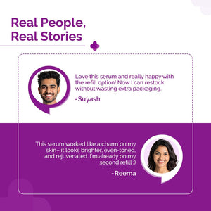 Affordable and sustainable! I just popped the refill into my empty container and it works exactly like the original. My skin still feels bright, and noticeably more even.