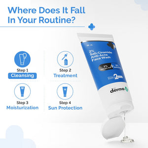 The Derma Co Sali-Cinamide Anti-Acne Face Wash is enriched with 2% Salicylic Acid (for gentle exfoliation and sebum regulation) and 2% Niacinamide (to fade acne marks).