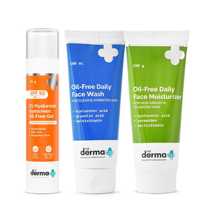 For oily skin, you can definitely combine the Oil-Free Daily Face Wash with The Derma Do. Oil-Free Daily Face moisturizer. For best results, apply 1% Hyaluronic Sunscreen Aqua Gel whenever stepping out in the sun.